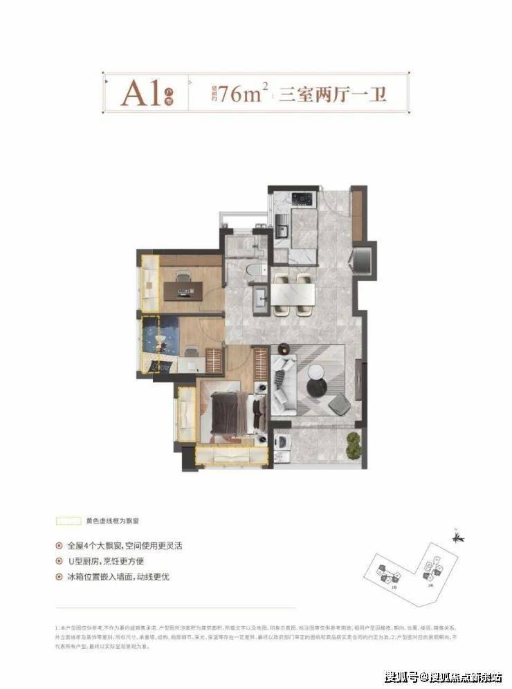 【户型】76㎡3房2厅1卫、90㎡3房2厅2卫