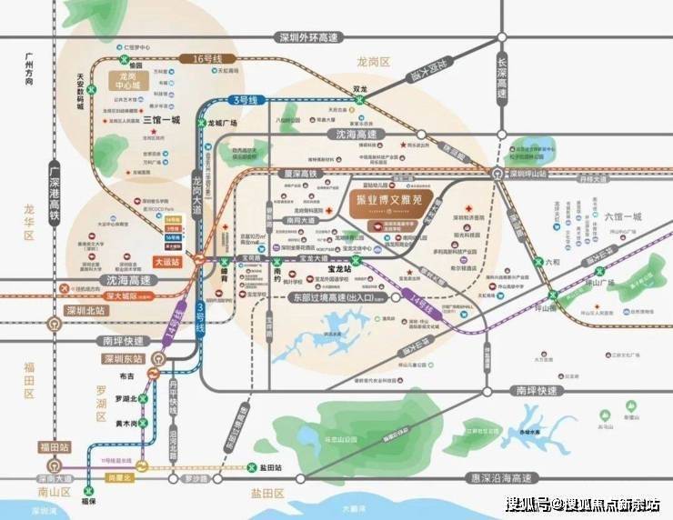16号线坪山站 :坪山站升级“坪山综合交通枢纽”,16号线、高铁、深大城际(宝安机场——坪山,在建)三轨交汇;