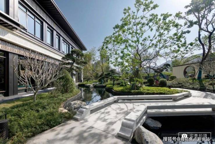北秦华府园林景观以叠石奇景,精巧花木为主,赋山形,观山语,呈现了一种如居山中的归家体验。二进镜水院,以水景、曲桥、角亭为主,呈现了符合中式生活特色的园林空间。项目园林以环绕式连廊、点景亭台、曲桥竹径,将山水园境串联,归家、入户、观景、会友合而为一,一步一景,归心生活。