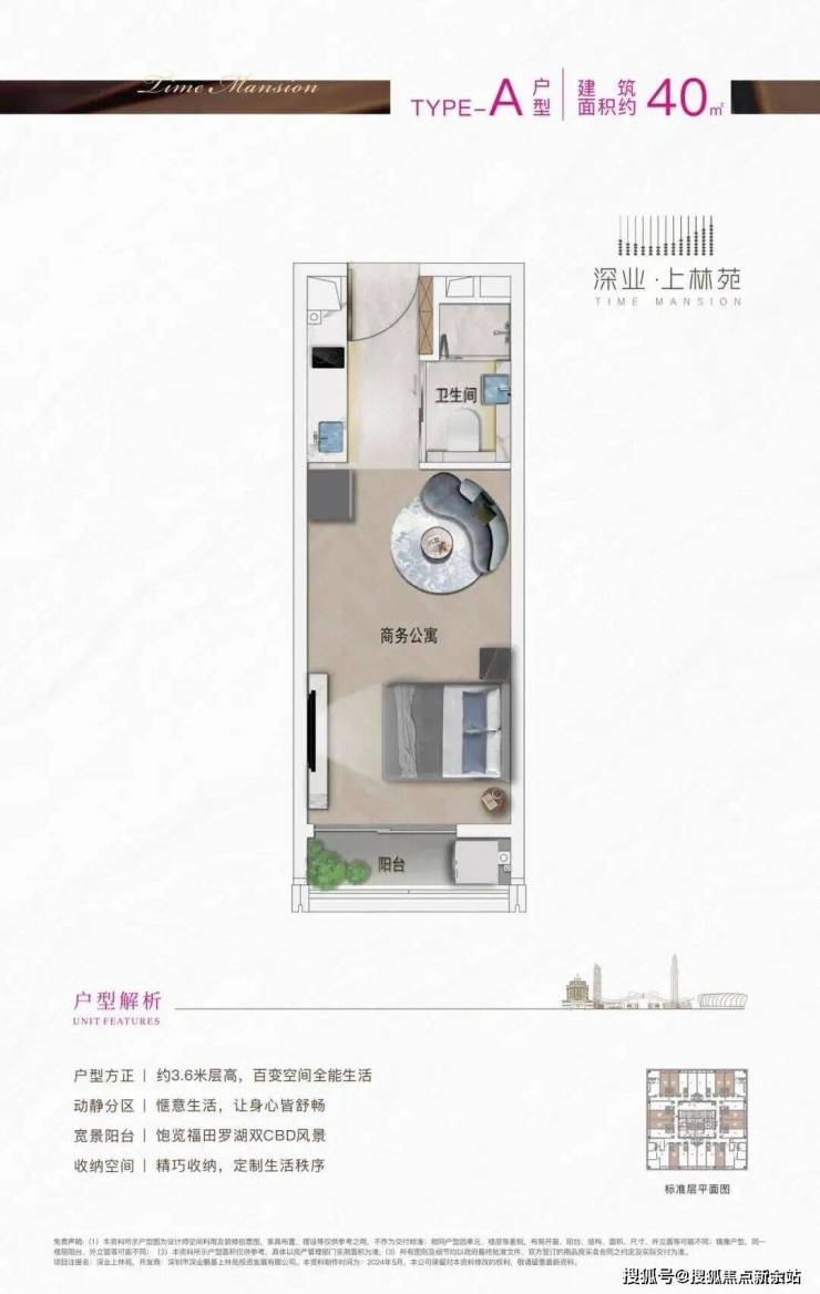 【深业上林苑】共一栋楼,建面约40-97㎡1-3房,约3.6米层高,户户带阳台。