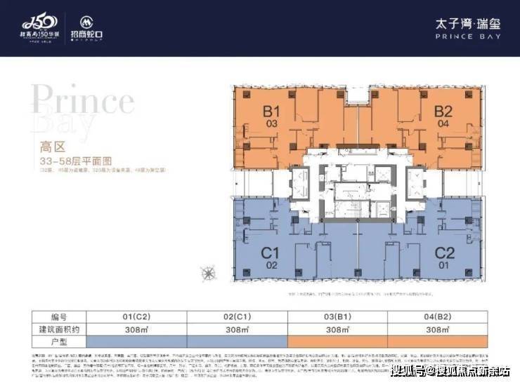 户型分布在高区33-47层,4个户型朝向,也可以两套打通做620㎡大户型,东南跟西南主要看海景,西北跟东北斗可以看部分海景+大小南山景观