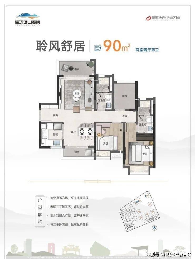 957呎(89㎡)三房兩廳兩衛,性價比至靚戶型,主臥套間盡享私密生活。968呎(90㎡)三房兩廳兩衛,超稀缺三房南北通雙陽台戶型。