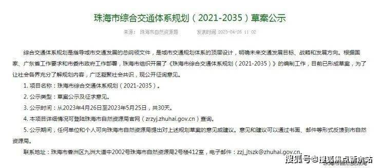 珠海市自然资源局公布了珠海市综合交通体系规划(2021-2035)草案公示!