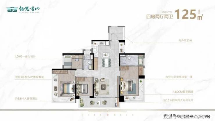 产品定位高端改善,主力户型为125㎡四房、152㎡五房,均带装修交付,得房率高达110%,远超传统住宅水平。户型采用LDKG一体式布局、双玄关设计,搭配超大景观阳台与270°飘窗,兼顾空间利用率与观景体验,部分户型增设独立家政空间,适配二胎家庭、三代同堂等场景,真正实现主城文脉芯、山水伴繁华的高端人居体验。