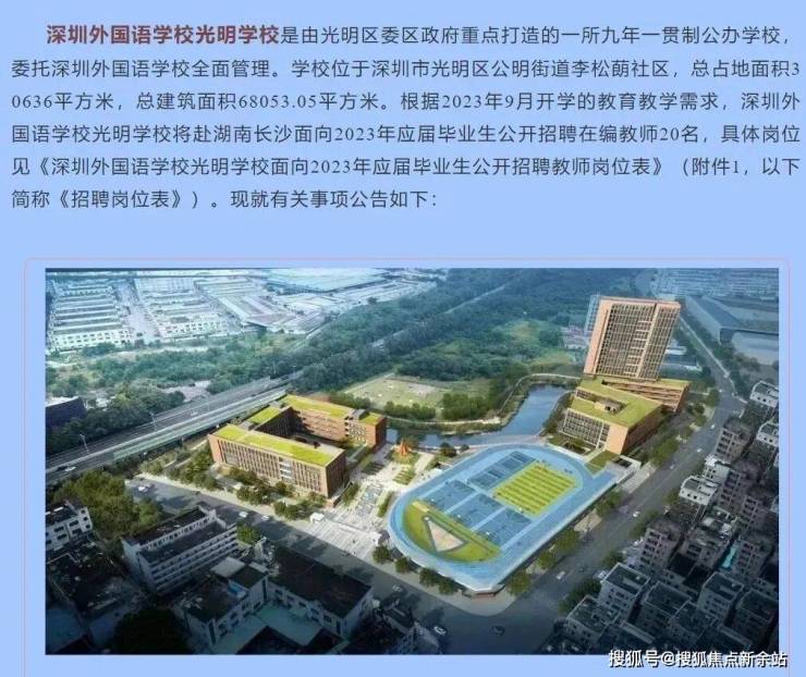 与深圳外国语学校光明学校(深圳四大名校之一)直线距离约800米,