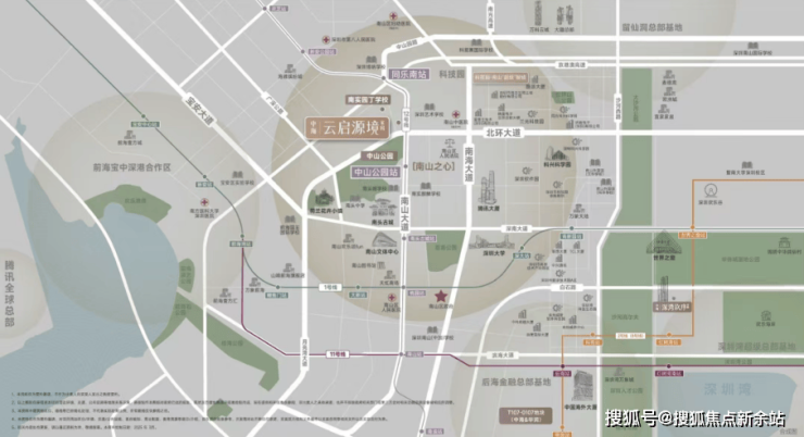 中海云启源境所在是南山与宝安交界的南头同乐板块,位于南山区北环大道北侧,紧靠南山实验园丁学校、豪方天际,与中山公园相邻。