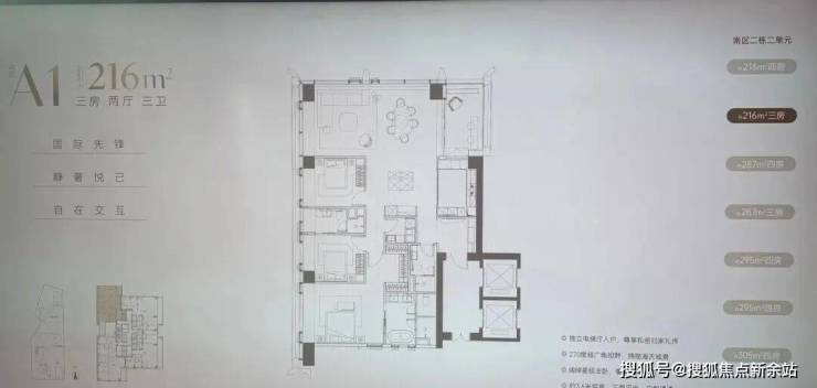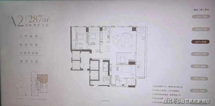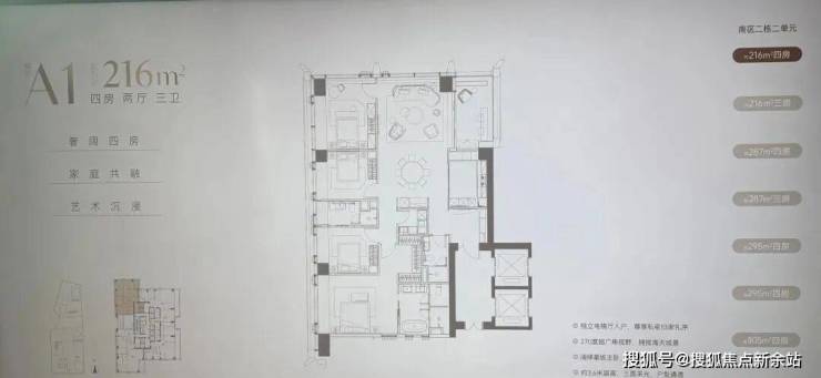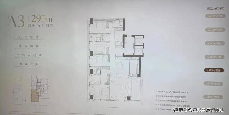 · 269-294㎡户型: 通常是四房以上大户型,注重家庭互动空间与个人私密空间的结合。