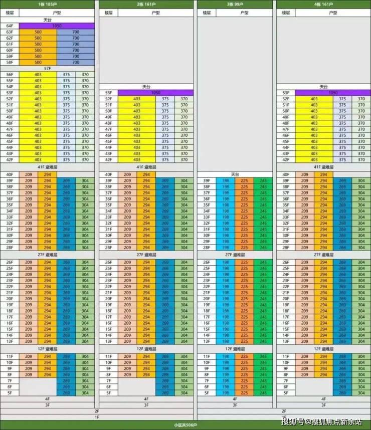 低区(5层起,150米内):约209-304㎡四房以上大户型。