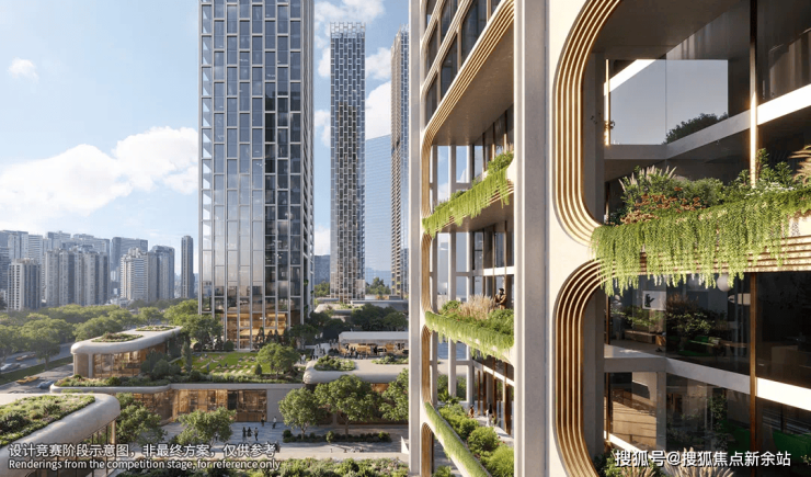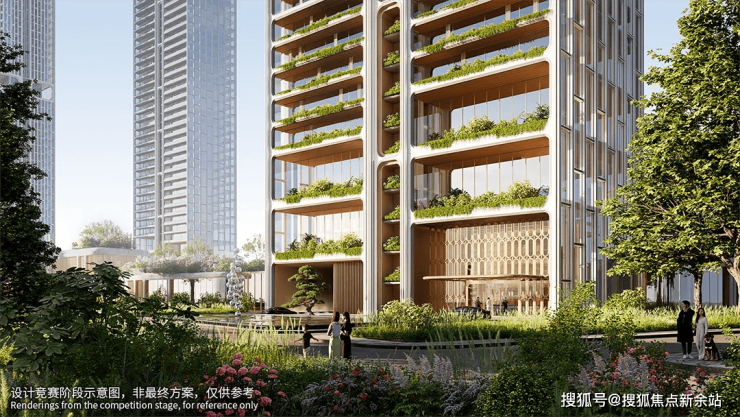其设计以“竹韵”为灵感的外立面,搭配垂直空中花园体系,不仅每层都有空中院落,还设置了星空会所、架空泳池等共享空间,将传统围合感与现代美学完美融合。