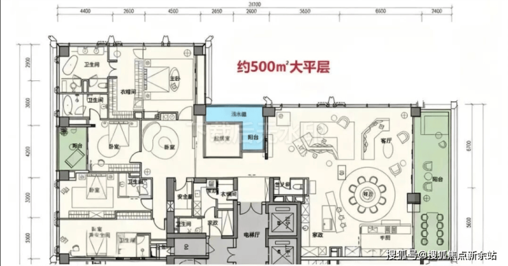 顶楼:约1050㎡整层大平层(仅3套)。
