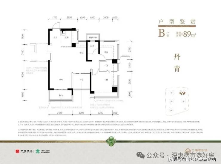 89㎡的4房2厅2卫,设计的是经典竖厅格局,进门入户玄关,客厅3.45米开间,动静分区,三开间朝南,分别做到了主卧14.54㎡/次卧7.96㎡/次卧7.56㎡/次卧5.8m²(包含墙体飘窗),主卧+1个次卧270°飘窗,U型厨房,公卫三段式干湿分离,得房率约102.2%(包含赠送),阳台5.52m²西南或东南朝向。飘窗赠送面积13.17m²+阳台赠送面积6.61m²+设备平台1.8m²=实际赠送面积约21.58m²。