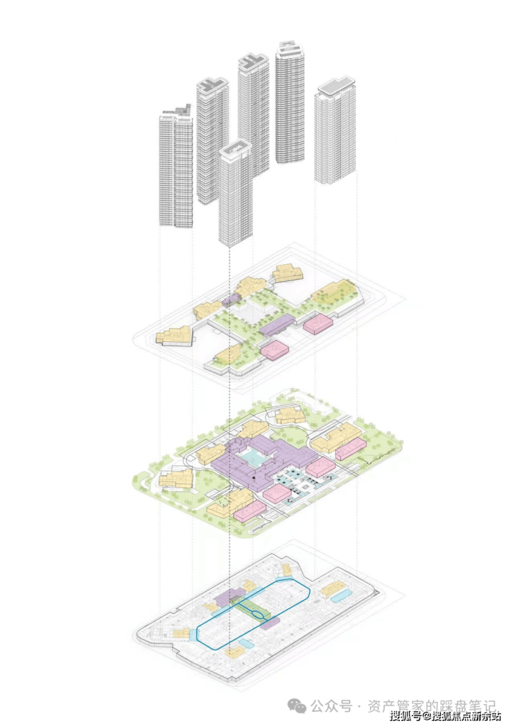 小区一共6栋楼,楼栋设计全板楼+南北对流,外立面清一色玻璃幕墙+铝板