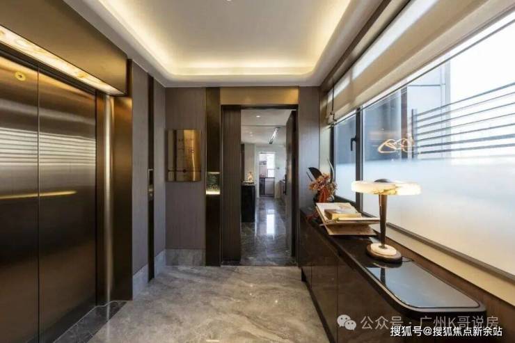 电梯出来的过渡空间,可作为“前庭”,展示个人喜好,也可做收纳空间,装下雨伞钥匙高尔夫球杆等,安放生活的琐碎。
