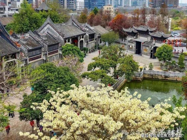 每年开春,园内的“网红”白花风铃木盛放,青砖黛瓦间,风铃摇曳,好似古园藏白雪,别样浪漫。