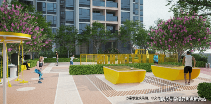 约1500平24小时运动聚落,设置羽毛球、乒乓球、儿童游乐园、成人健身器材等
