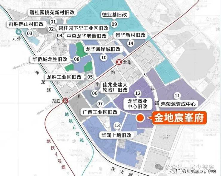沿人民路自南向北,分布有华润上塘旧改,以及汇聚了金地、中洲、鸿荣源等品牌房企的龙华商业中心旧改等;