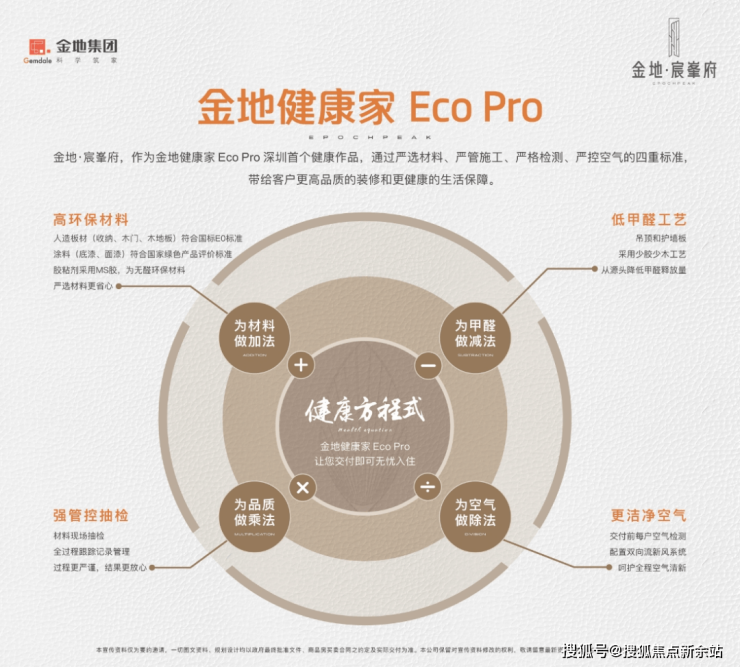 金地·启曜,作为金地健康家Eco Pro深圳首个健康作品,通过材料标准提升、工艺标准提升、装修材料抽检、空气质量管控的四大维度,带给客户更高品质的装修和更健康的生活保障。