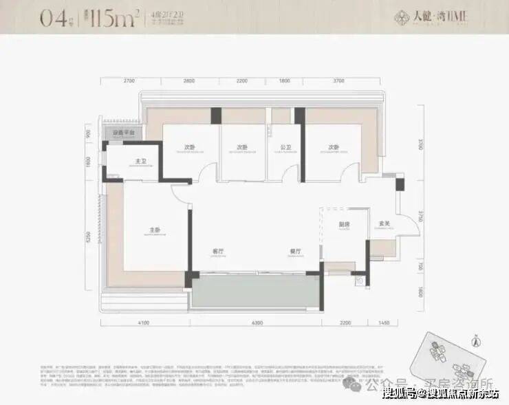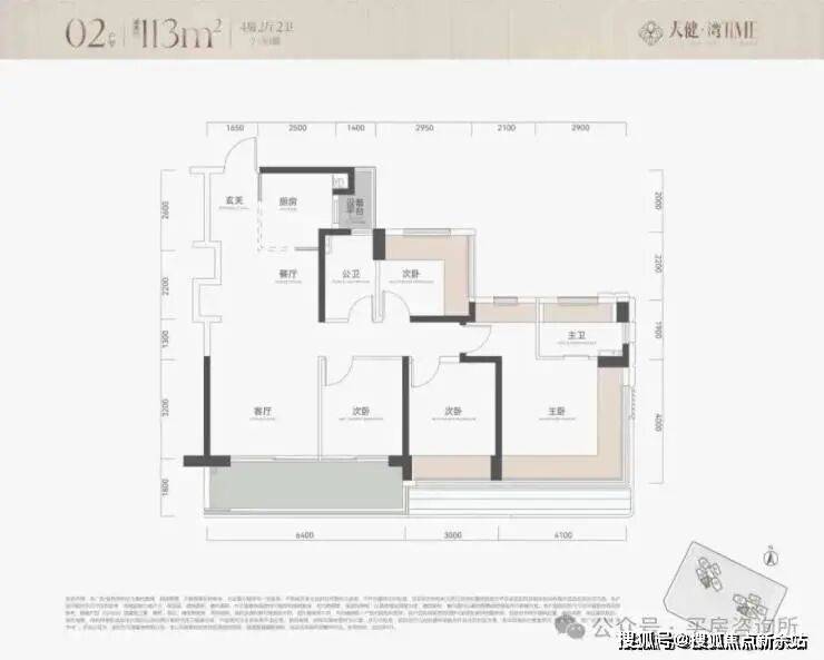户型为113㎡四房114四房和139㎡五房约290套,2栋100米内30层住宅,2梯5户,其中主力为113㎡四房,整体以朝南及西南为主,有两套朝东北面向金众。