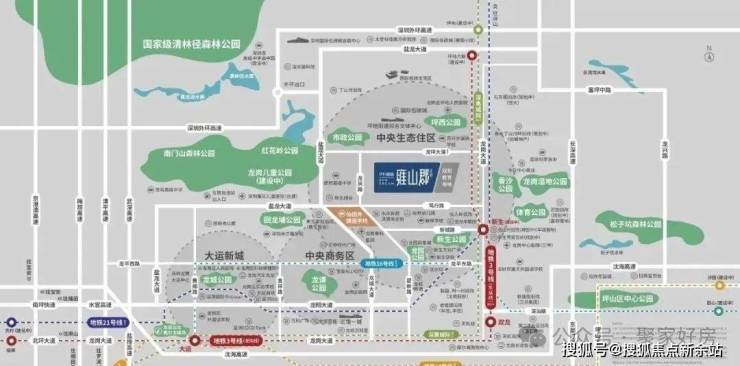 毗邻红花岭低碳生态公园、清林径森林公园、龙岗湿地公园、龙园公园、龙岗儿童公园(建设中)等公园,繁华与自然皆在进退之间。