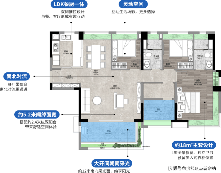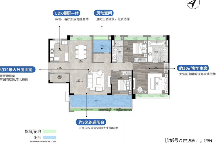 82㎡三房两卫,小户横厅重出江湖,片区内绝版横厅小户强势补货。南北对流,四开间超11米采光,270度超大角度采光,海园双景皆可拥有。