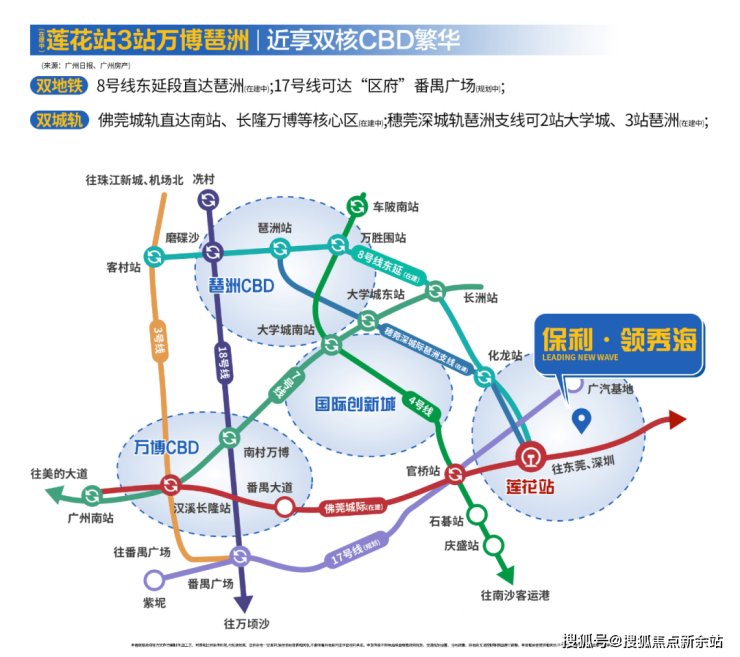 有一个莲花山站,城轨加地铁。城轨已经通车,从肇庆到惠州跨五城城轨。地铁8号线东延线还没有那么快开通,以及在建设的琶洲支线。不过项目距离莲花山站2.8公里,需要开一个电动车或者搭乘楼下的公交一个站到达。