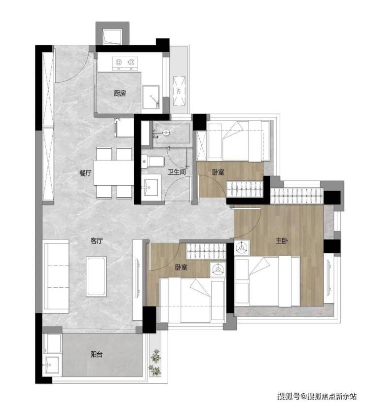 78㎡三房两厅两卫,全新升级三房,四开间朝南,超11米南向采光面,270度超大角度采光,直望广阔园景。