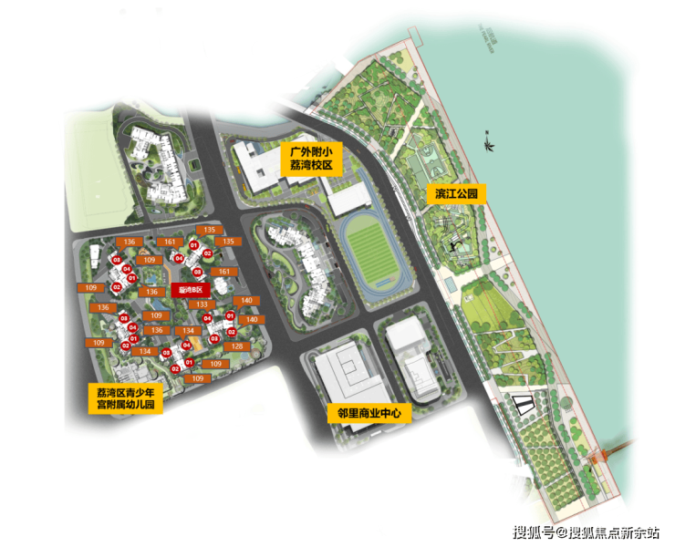 广州滨江天地总共规划了2所幼儿园,2所小学。