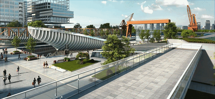 城市图书馆、船坞博物馆、广船演艺中心、大地艺术岛、船台艺术中心等,一系列城市公共文化空间将聚集在这里,其中船台艺术中心就已封顶。