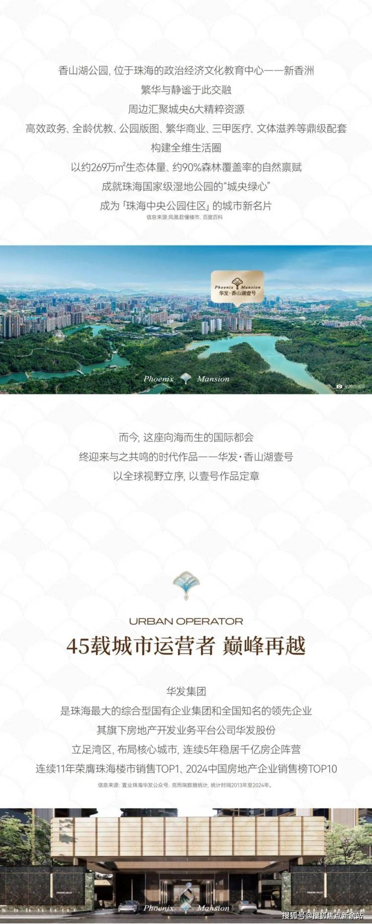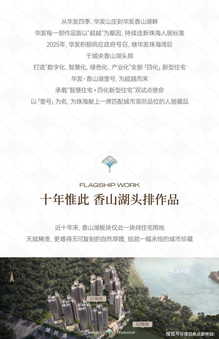 华发香山湖壹号是珠海主城芯稀缺山湖生态顶豪,由国企华发倾力打造,踞守凤凰山下、香山湖头排,为板块近十年唯一一线临湖纯住宅用地,堪称 “十年一席” 的城央生态藏品。