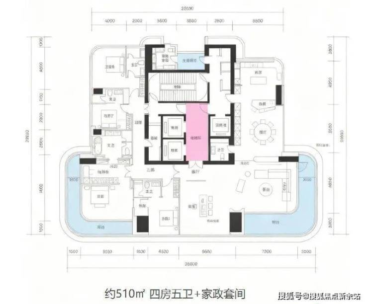 1A栋 | 云端独尊,终极藏品 (约510㎡) 5+1房3厅5卫: