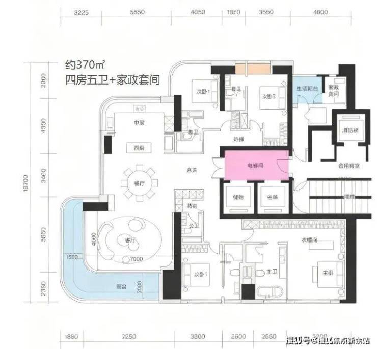 一层两户,经典大平层:约285㎡主力户型,空间布局方正大气,功能完备。