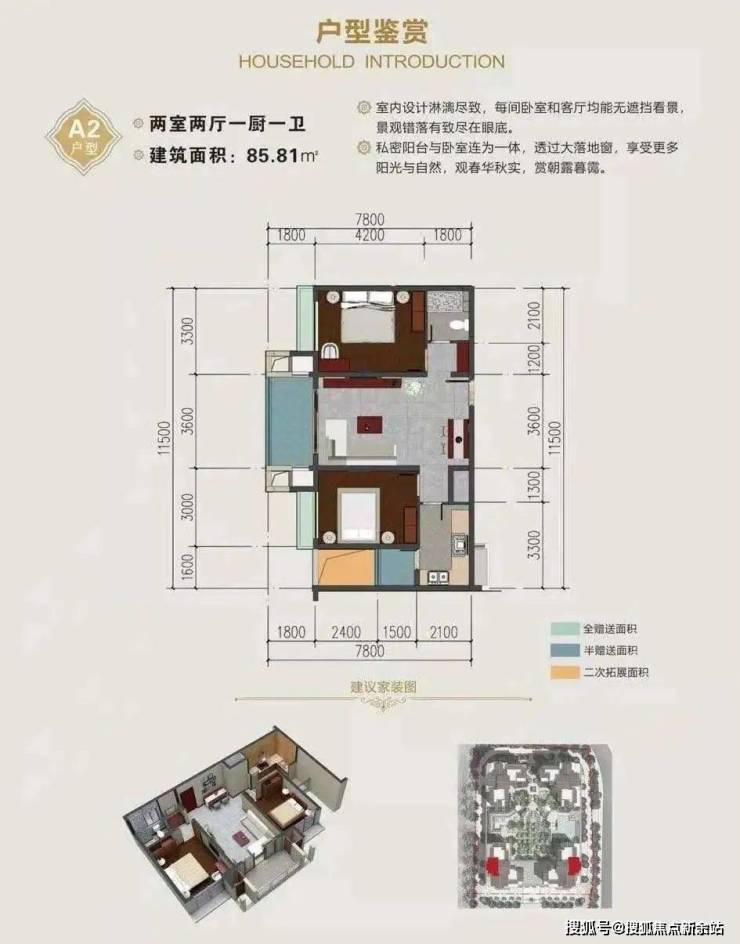 85.81平 赠送8.44平两房两厅一卫