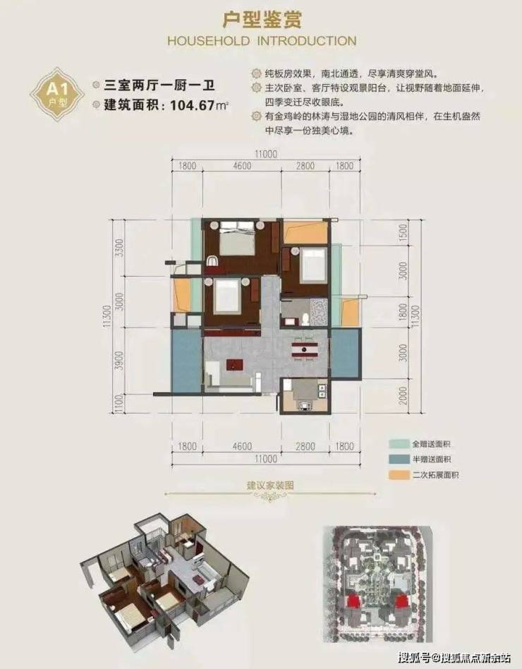 104.67平赠送17.50平三房两厅一卫