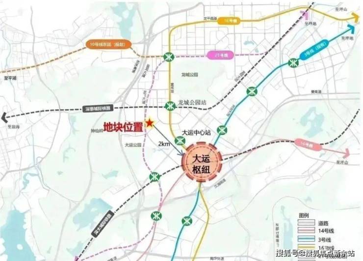 项目距离地铁16号线“大运中心站”约800米,步行约10分钟,1站可到达大运枢纽,快速换乘3/14号线,以及未来的深大城际;距离深惠城际“大运北站”约1公里,目前仍在建设当中,计划在2026年11月份通车。
