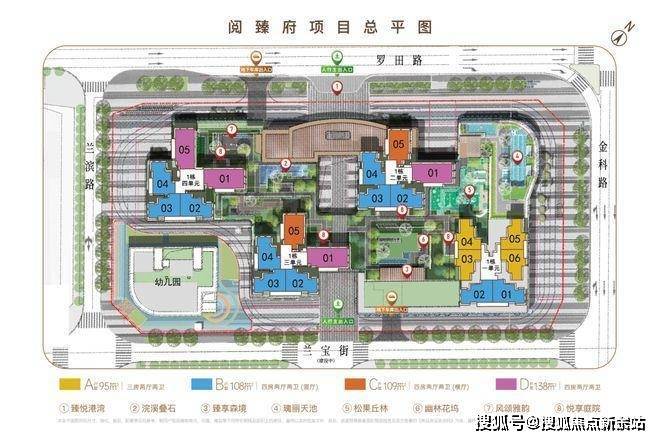 项目共有5栋建筑体组成,一栋幼儿园+3栋高层住宅+1栋超高层住宅,面积涵盖94m、108㎡、138m2三至四房。