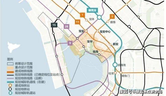 5地铁:距地铁11号线宝安站约800米,毗邻地铁1/5/9号线,28号线(首条跨海内环地铁,规划中)4城轨:深港西部快线 (已规划) 、深惠城际线(在建)、穗深城际线(在建)、深珠城际线(已规划)3高速:沿江高速、深中通道(在建)、深珠通道(已规划)2码头:大铲湾码头、妈湾客运码头1枢纽:前海综合交通枢纽