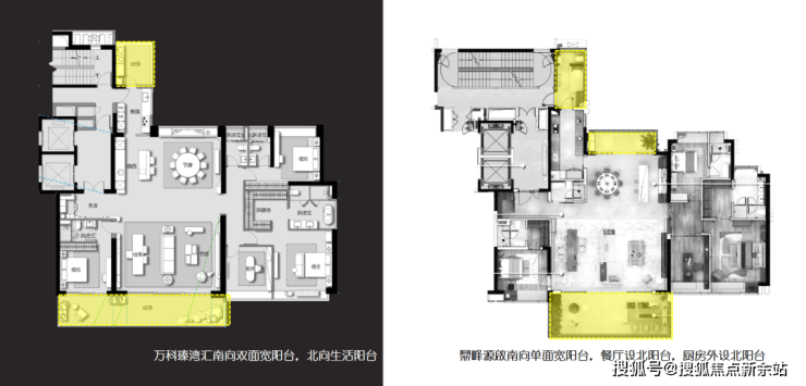 南次卧套的使用场景上看,万科的双面宽阳台兼顾了南向次卧套的使用,比如老人到阳台晾衣服或者在阳台上坐坐,这点就不用穿越客厅。从使用动线上更优。