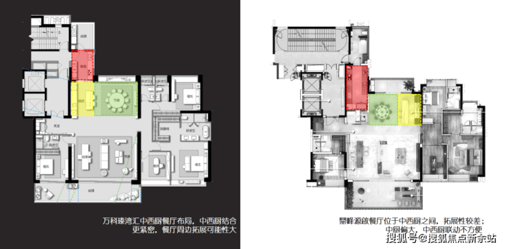但是如果从客餐厅,以及中西厨的关系看两个户型,就更能感受两个户型的差异。