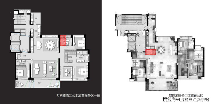 为啥这里单独把公卫拿出来说。其实仔细看看,公卫位置的选择几乎是这两个户型最大的差异点了。正是小小公卫位置的选择,就直接影响到了全局。