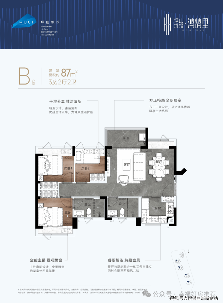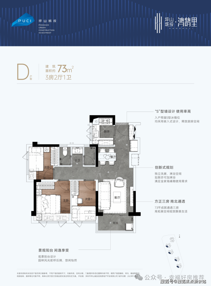 坪山城投·鸿鹄里,采用错落有致的布局,打造“看得见青山、望得见绿水、留得住乡愁”的理想生活,将城市繁华与自然生态融合。市场上少有的73㎡3房及97㎡4房的空间设计,臻选马可波罗、科勒等品牌用材,缔造精工品质美宅,营造高效优雅的生活场景。