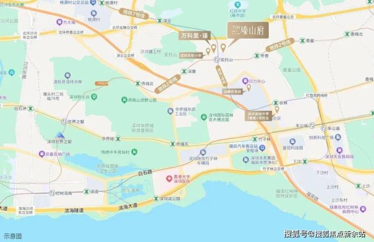 🔹纵横繁华 浅隐自然项目所在香蜜湖片区,周边倚靠安托山、塘朗山,与香蜜湖为邻,公园环簇安托山博物公园、梅林山公园、香蜜公园、园博园、儿童公园、燕晗山公园等。以两山一湖六公园的生态格局,拥揽城市绿肺。