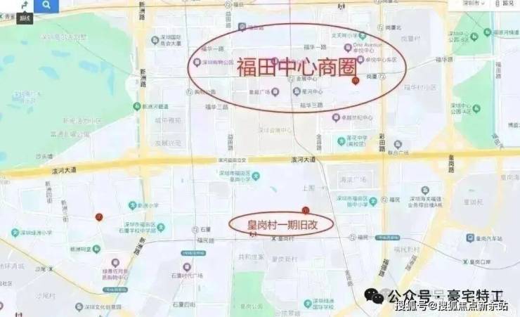 皇岗村改造项目,位于福田福民路与皇岗二街交汇处西北角,紧邻深圳地铁7号线皇岗村站,地处深圳中心的核心腹地。