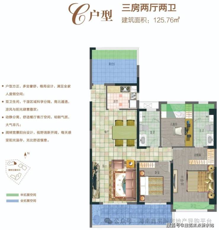 中投·悦府占据金鸡岭居住片区核芯制高点,北临金鸡路,东靠金鸡岭街,毗邻三亚城市主干道之一的凤凰路,临近三亚河,远眺金鸡岭及三亚湾,山、河、海景观资源俱备,是为三亚城心绝美珍稀席位。占地8191.71㎡,建筑面积41438.26㎡,容积率3.5,绿地率高达40%,由三栋板式高层住宅及相关配套物业、临街低层商业环绕组成,内部为中央景观花园及泳池。70年产权高质恒产五星级的家,为了追求高品质人性化设计,首层架空层高5.25米入户大堂,高端大气通透通风,告别压抑。为了追求居住的品质以及舒适性,采用外连廊式设计,带来了更多通风和采光及景观视野,超1:1比例停车位,人车分流,安全人性化俱佳。项目迎合未来科技住宅发展趋势,打造高度智慧化社区,业主入门入户系统自动识别,刷脸解锁,智能家居,一键互联。业主外出采购物品回来,智能系统自动识别业主信息,并可提供帮助。外来可疑人员,自动识别报警。让您真正感受到智慧社区的安全及便利性;中投·悦府首开81-125㎡二至三房两种装修风格,A、C户型为现代风格,B户型为简欧,满足不同人群对装修风格要求,装修风格简约大方,魅力时尚。