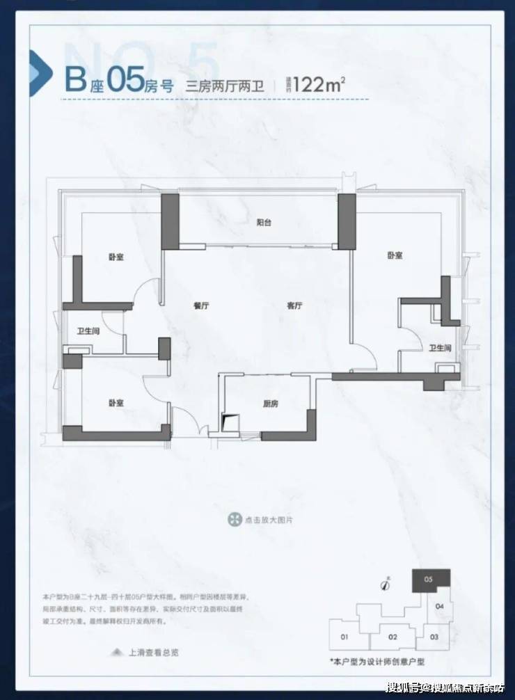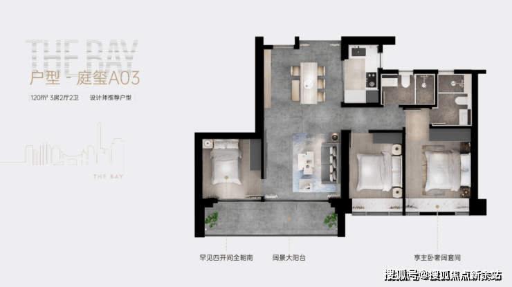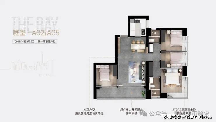 120-124㎡三房两厅两卫:部分户型享两开间宽景阳台,可俯瞰福田中心景观,客厅开间开阔,家庭互动空间充足,居住舒适度拉满。