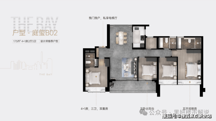 175㎡4+1 房两厅三卫:大尺度空间布局,4+1 房设计灵活满足多人口家庭需求,主卧配备独立卫浴与衣帽间,部分户型可俯瞰香港米埔湿地公园,视野极佳,彰显高端居住品质。