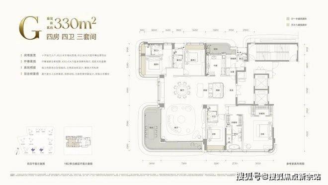 - 约330㎡四房四卫(三套间)+家政套间G户型