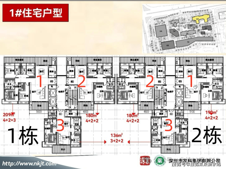 1栋:212㎡的4房、137㎡、185㎡、192㎡的3房