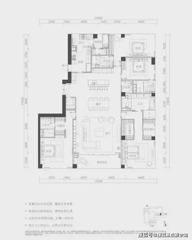 面积:户型多样,包括230-280㎡3房3卫、300-380㎡4+1房5卫、576㎡4+1房6卫、600-700㎡6-7房7卫等