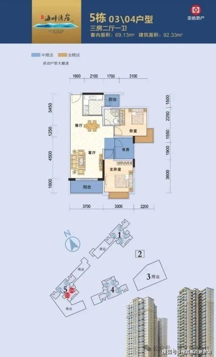 5栋:25层,1个单元,2梯4户,无地下室,首层为商铺,三层以上为住宅。忠信海畔湾居开发商24小时电话400-832-5521【售楼中心☎☎已认证】⭐