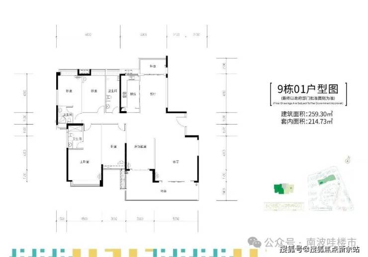 9栋,两梯两户,建面约255-259㎡五房大平层户型